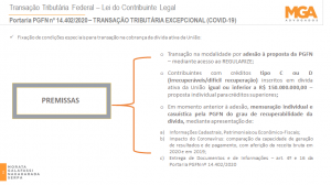 Portaria PGFN nº 14.402/2020 – TRANSAÇÃO TRIBUTÁRIA EXCEPCIONAL (COVID-19)
