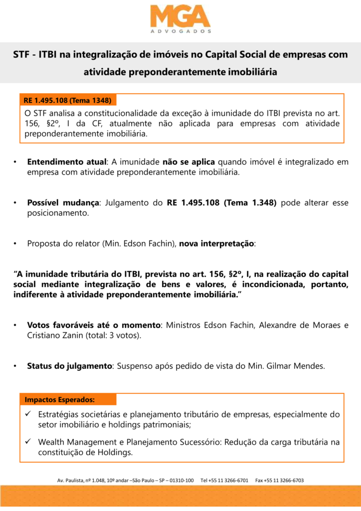 STF ITBI na integralização de imóveis no Capital Social de empresas com atividade preponderantemente imobiliária